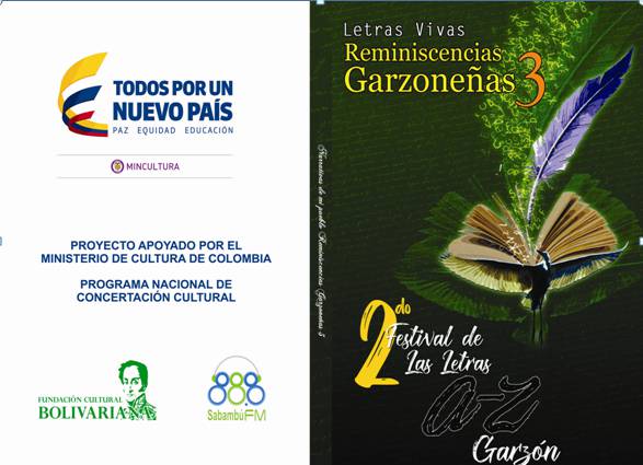 La Fundación Cultural Bolivariana de Garzón – Huila, en cumplimiento del proyecto desarrollado con apoyo del Ministerio de Cultura Programa Nacional de Concertación cultural, “Segundo Festival de las letras AZ Garzón”, ha seleccionado los siguientes cuentos para ser incluidos dentro del libro “Letras Vivas, Reminiscencias garzoneñas 3 el cual se presentará en un evento especial el día 30 de Agosto.